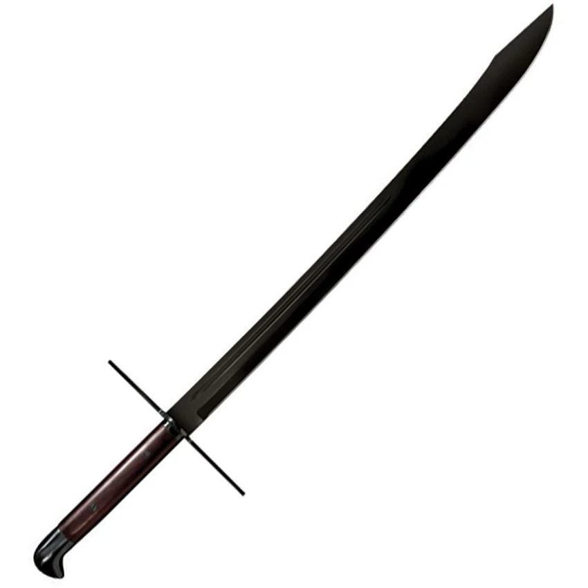 Model – CS88GMSM. MAA Grosse Messer. Construction: 1055 Carbon Steel; Overall: 42.25 inch; Blade: 32 inch l Carbon Steel l Standard Edge; Handle: Brown; Other Info: Man at Arms Collection. Blued gun metal finish blade. Rosewood handle. Blued finish steel guard. Leather belt sheath with blued fittings. Boxed.